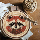 Cheerful Raccoon Face Punch Needle Kit – Whimsical Handcraft Project | Delightful Tabletop Trinket