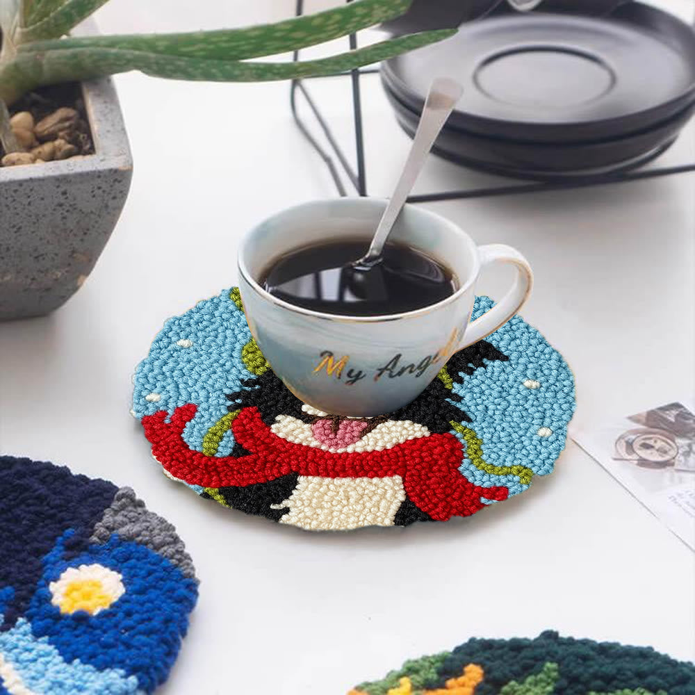 Winter Adorned Puppy Punch Needle Kit – Easy Beginner Artisanal Piece | Cute Decor Hanging