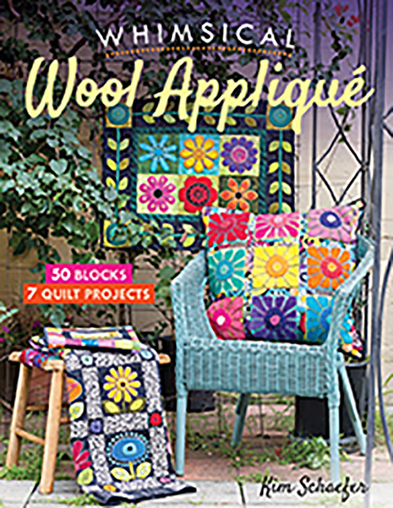 Cosy up to wool appliqué with fifty colourful garden blocks to mix and match! Best-selling author Kim Schaefer shares seven easy wool appliqué projects to teach you embroidery basics or to bring your hand stitching to the next level. Layer luscious flowers, birds, and butterflies of wool on top of cotton fabric, then add the embroidered finishing touches to fusible appliqué wall quilts, table toppers, and pillows. It’s the perfect primer for every skill level.