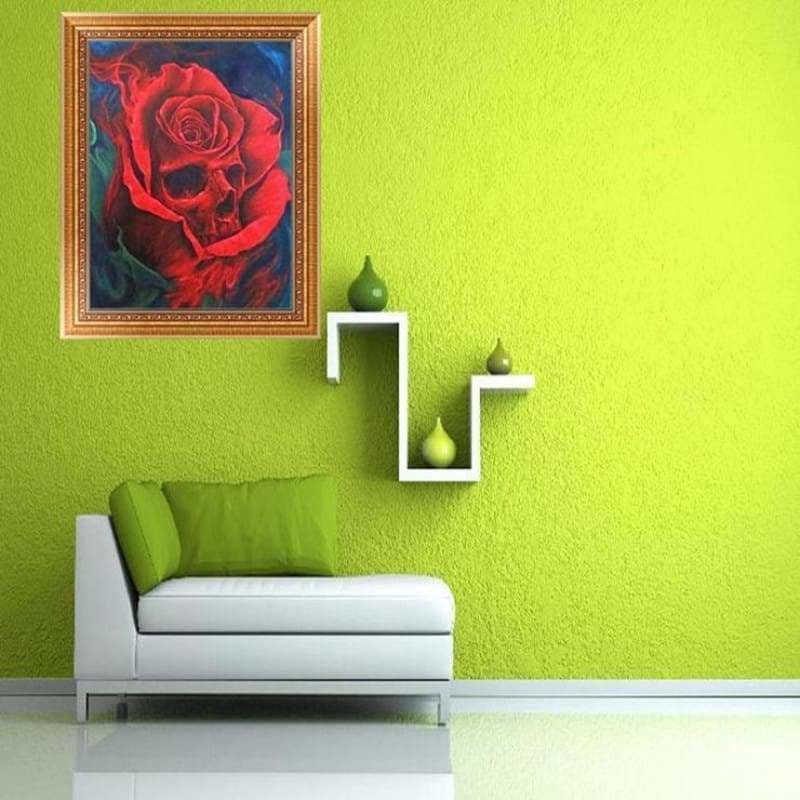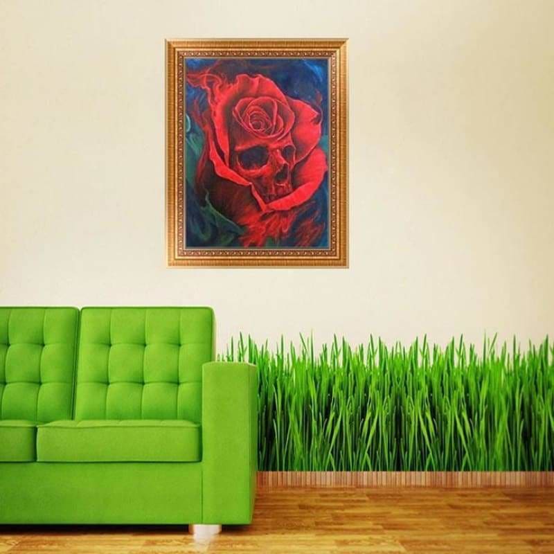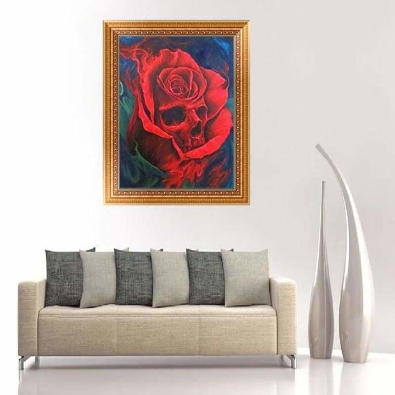 Full Drill - 5D Diamond Painting Kits Abstract Skull Red Roses