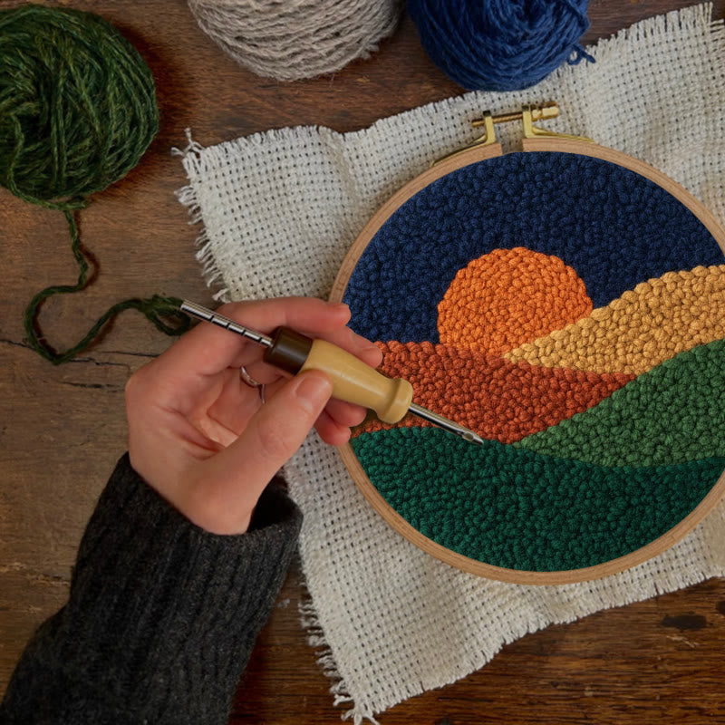 Twilight Mountain Sunset Punch Needle Kit – Elegant Handmade Decor Pendant | Newbie