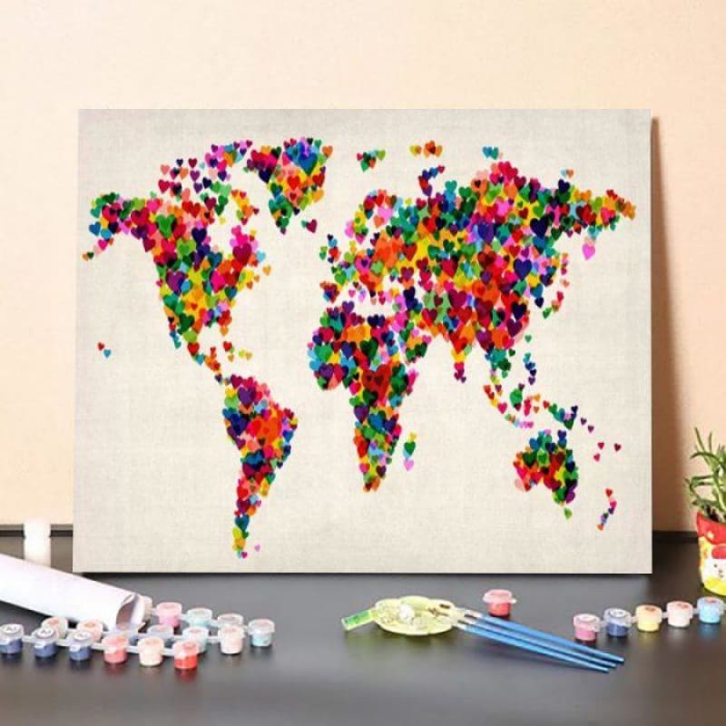 World Map Hearts (Multicolor) II – Paint By Numbers Kit