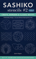 Begin your sashiko embroidery with ease using these traditional Japanese design stencils. Includes three 5" x 9" durable plastic stencils and instruction booklet.